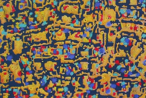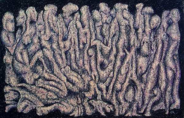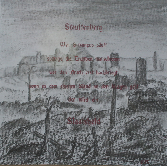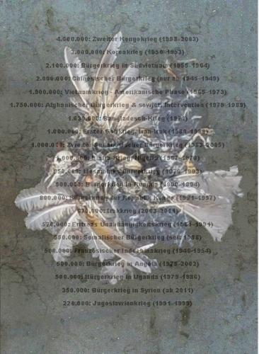Bunte Bomben auf Bagdad Mischtechnik (Drucker, Pastell, Tapeziermesser, Gartenhacke) |