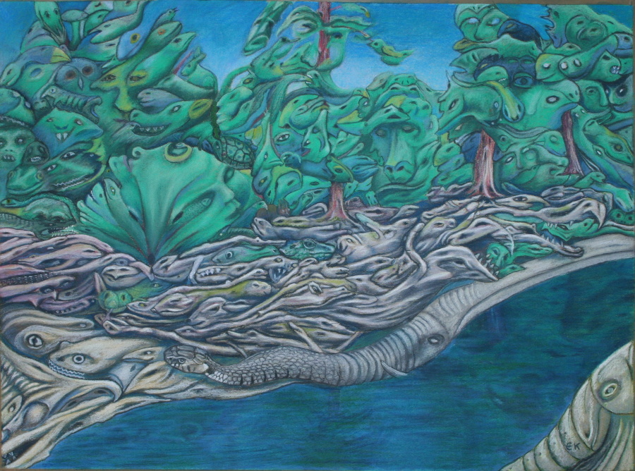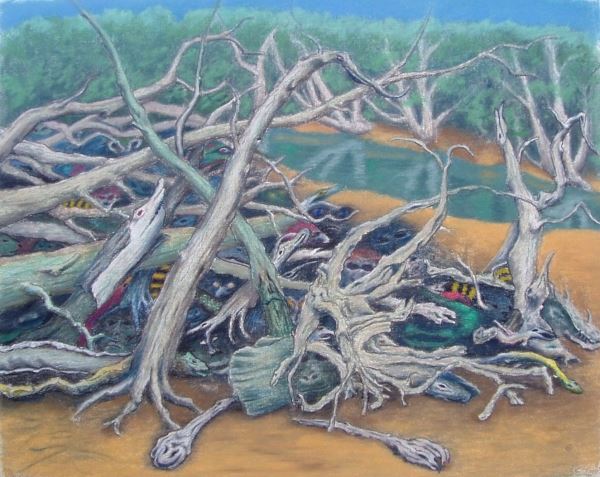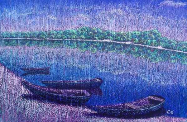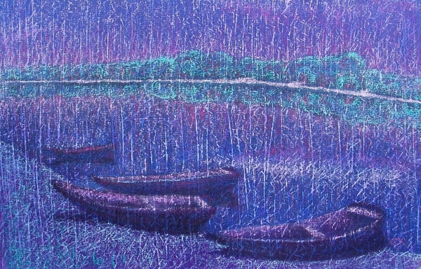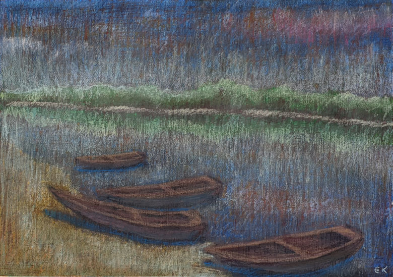 Boote am Fermasee III Pastell und Tapeziermesser |